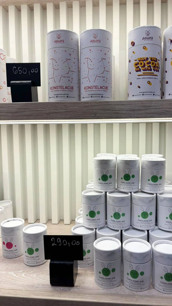 Dobrodošli u magični svet Aguara čokolade, svet u kojem se umetnost pravljenja čokolade susreće sa jedinstvenim dizajnom. Naš asortiman čokolada predstavlja savršen sklad ukusa i estetike, upakovanih u primamljive oblike sa naglaskom na održivost kroz recikliranu ambalažu.